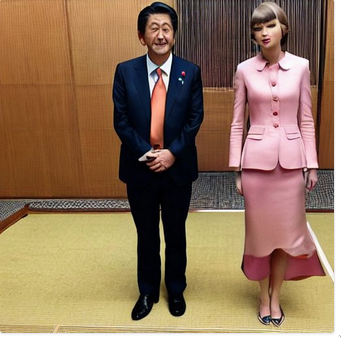 Taylor Swift standing next to the prime minister of Japan