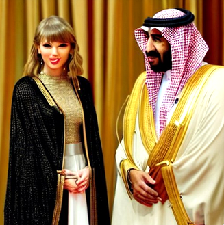 The king of Saudi Arabia standing next to Taylor Swift